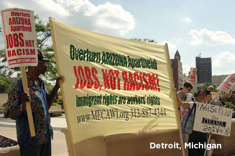 For our friends in Arizona or those who are coming to Arizona, we have kicked off our Week of Action against Criminalization, and on July 29th we ask all Arizonans – Don’t Work, Don’t Buy, Don’t Comply! Please text 30644 with the message, “Arizona” for up to the minute information about actions this week.
